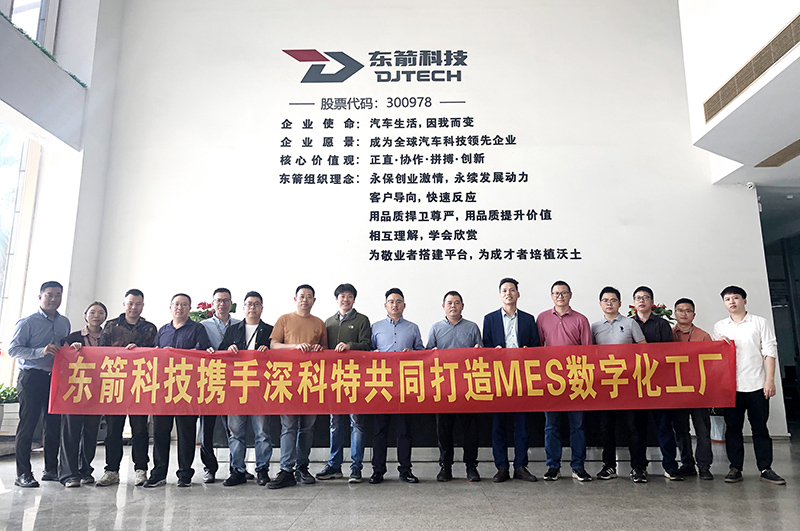 ? ? ? 伴隨著社會經濟的發展,數字化、智能化成為了當下制造業發展的一種趨勢。深科特繼東箭智能LEAN MES項目合作之后,2023年2月13日,再度牽手IPO上市公司-廣東東箭汽車科技股份有限公司,雙方項目成員及高管共同見證歷史性的一刻。
