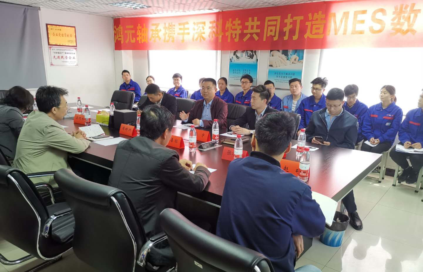 ? ? ? ?近日,我司順利簽約洛陽鴻元軸承科技有限公司,為其提供LEAN?MES精益制造執(zhí)行系統(tǒng)及實(shí)施服務(wù),鴻元軸承“智能制造,智造未來”LEAN MES項(xiàng)目啟動(dòng)大會(huì)在洛陽總部二樓會(huì)議室隆重召開,孟津縣工信局副局長張志通,鴻元軸承領(lǐng)導(dǎo)吳巧玲、周樹洲,深科特領(lǐng)導(dǎo)陳林剛以及雙方項(xiàng)目團(tuán)隊(duì)成員等35人共同出席了項(xiàng)目啟動(dòng)大會(huì)。
