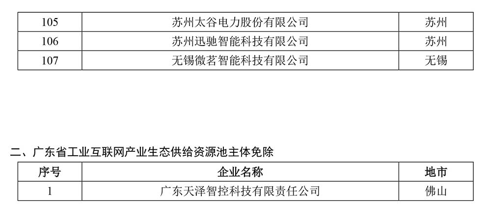 一、本次公示的廣東省工業互聯網產業生態供給資源池企業為新增企業,已納入第一、二、三批的企業將繼續享有相關資質(不含主體免除企業),不再重復公示。