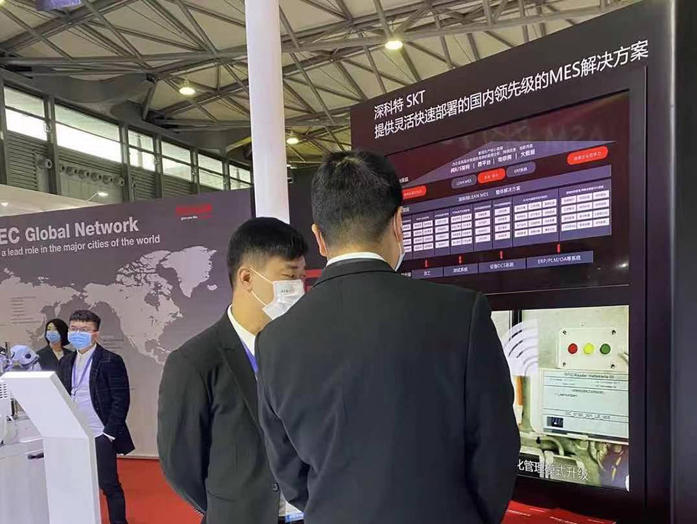 我司參展人員分享產(chǎn)品方案,參會者近距離體驗(yàn)、直觀理解MES技術(shù)在制造業(yè)中的作用與意義,深入了解深科特的優(yōu)勢與成果。